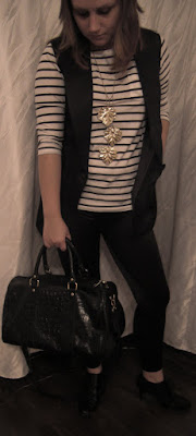 Yes, I confess: I didn't just bought the scarf. Suddenly I stood infront of the cash register and I received a bag with lots of beautiful stuff. I ignore the fact that the woman took my EC card to book the money over. I was lucky and left the building; within my bag there were a scarf, a hair circlet, a barrette, a black cardigan, a striped shirt and a cool clutch bag.
